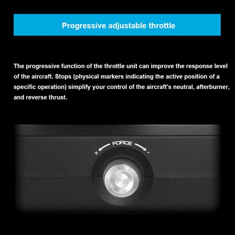 4. The progressive function of the throttle unit can improve the response level of the aircraft. The stop section simplifies your control of aircraft neutral gear, afterburner and reverse thrust. It also provides another custom function, the tension adjustment dial, which can Change the resistance of the throttle to suit the way you fly