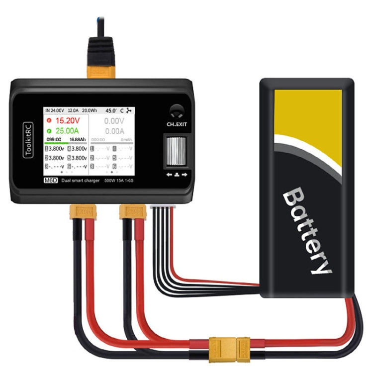 ToolkitRC M6D 500W Toy Airplane Dual Channel Li-Po Battery Balance Charger(Black)