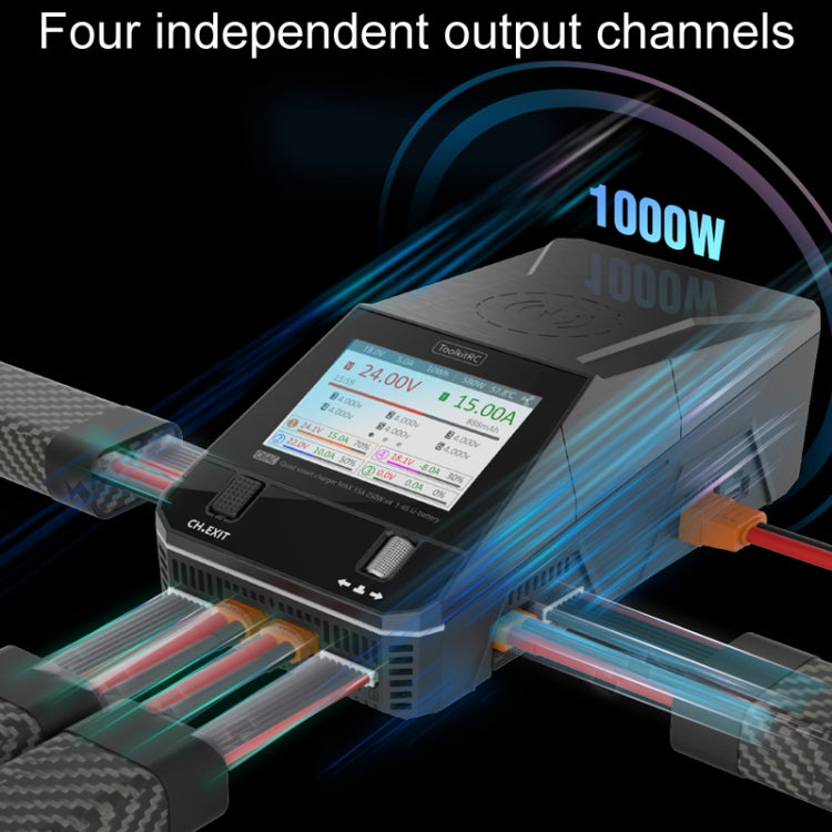 3. Charging power: DC input: 0.1-15.0A 250W/CH x 4; AC input: 0.1-15.0A 200W/CH x 2; AC input: 0.1-15.0A 100W/CH x 4; Synchronized mode: 0.1-25.0A 500W/CH2+CH3