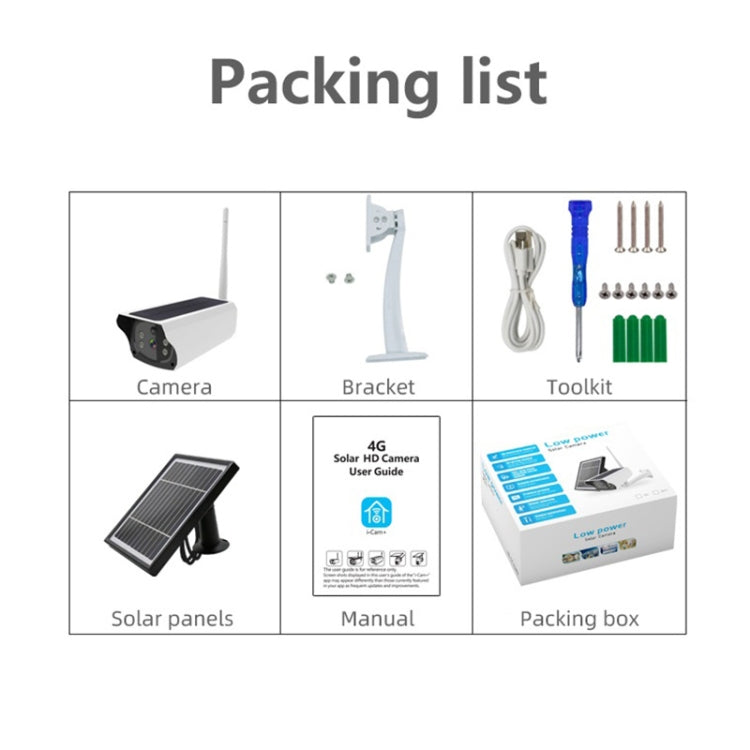 1 x Camera 1 x Mounting Accessories 1 x Bracket 1 x User Manual 1 x Solar Panel |