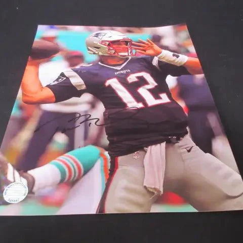 Celebrate the legendary career of Tom Brady with this A Tom Brady NEW ENGLAND PATRIOTS Signed 8.5x11 Photo SSC COA 125647. Expertly signed by the NFL icon himself, this remarkable piece captures Brady’s iconic presence on the gridiron, making it an essential addition for serious sports memorabilia collectors and devoted Patriots fans alike.