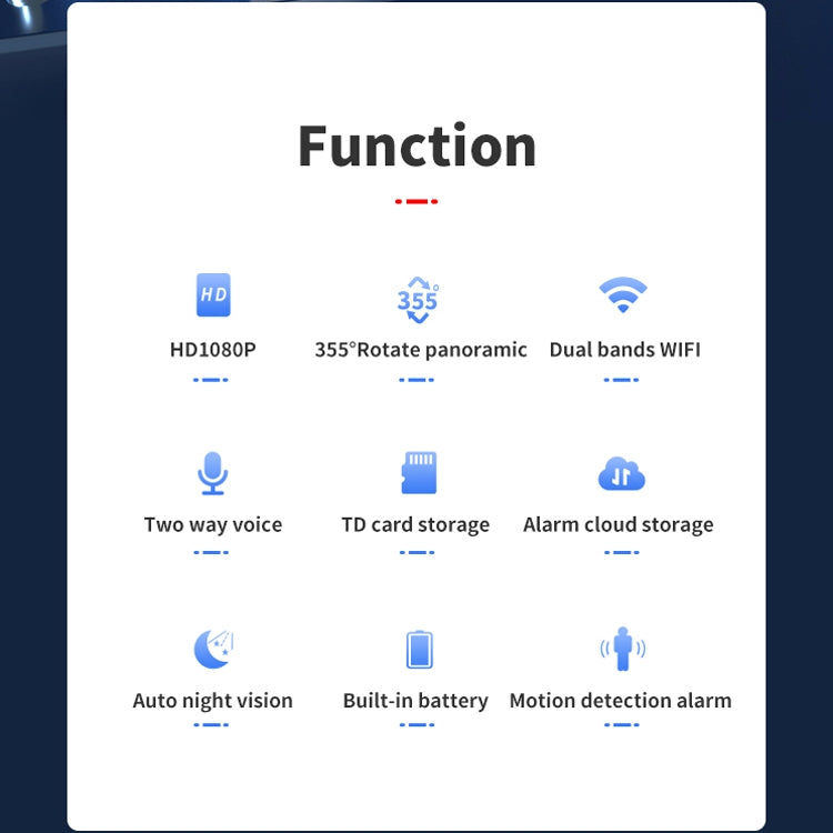 1. 355-degree pan-tilt panoramic viewing angle, mini compact and more free care: adopts the pan-tilt design, 355-degree horizontal viewing angle. APP operation, see where to point.