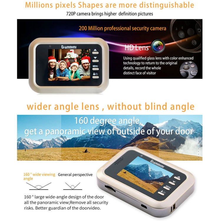 Danmini Q8 2.4 inch Color Screen 1.0MP Security Camera No Disturb Peephole Viewer, Support TF Card (32GB Max) / Night Vision / PIR Motion Detection(Gold)