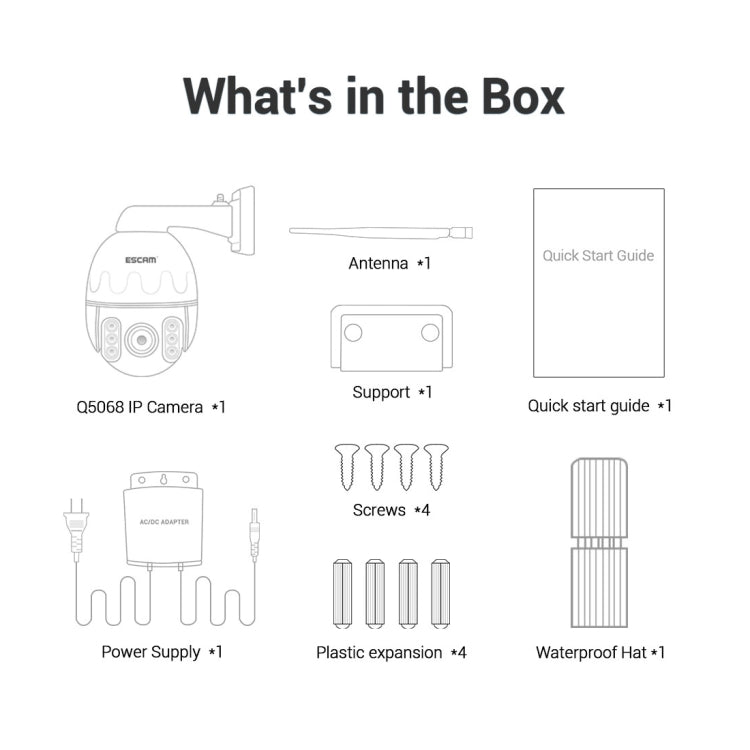 ESCAM Q5068 H.265 5MP Pan / Tilt / 4X Zoom WiFi Waterproof IP Camera, Support ONVIF Two Way Talk & Night Vision, EU Plug