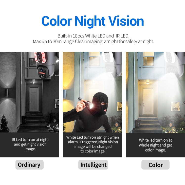 28. Intelligent dual-light mode, 18 infrared + IR night vision LEDs, infrared distance up to 30 meters
