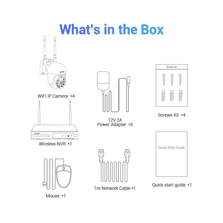 ESCAM WNK714 3.0 Million Pixels 4-channel HD Dome Camera NVR Wireless Monitoring Kit, EU Plug