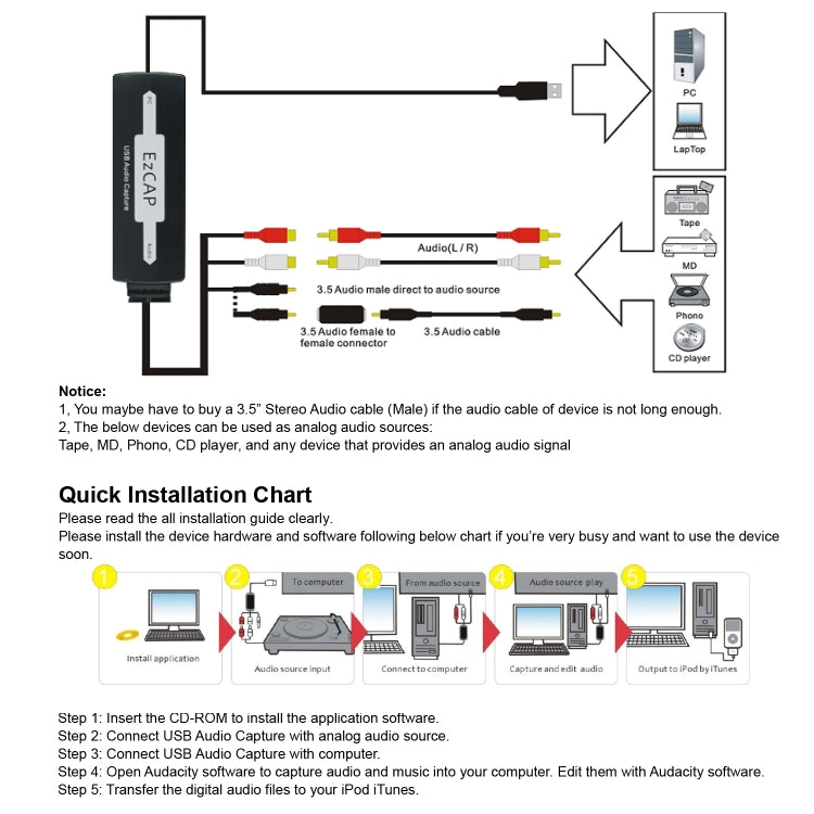 You can simply just plug to your USB port, record and play sounds and import and export WAV, AUFF, MP3, and OGG files. Edit your sounds using cut, copy, and paste features (With unlimited undo functionality), mix tracks, or apply effects to your recordings. The program also has a built-in amplitude-envelope editor, a customizable spectrogram mode, and a frequency-analysis window for audio-analysis applications. Built-in effects include bass boost and noise removal