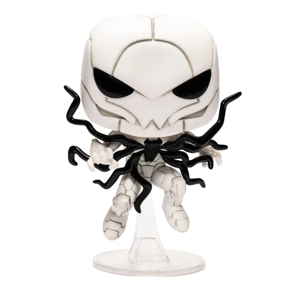 Entertainment Earth Exclusive! Spider-Man seems to have a symbiote problem on his hands. Straight out of the Venomverse, this one-of-a-kind Venom Poison Spider-Man Pop! Vinyl Figure features an all-white suit, complete with the symbiote chest emblem rippling out of his body! Measuring roughly 3 3/4-inches tall, the Venom Poison Spider-Man Pop! Vinyl Figure - Entertainment Earth Exclusive comes in window-box packaging, ready for play or display. You'll also want to keep an eye out for the randomly selected glow-in-the dark chase variant of the figure! Order your Spidey exclusive today!