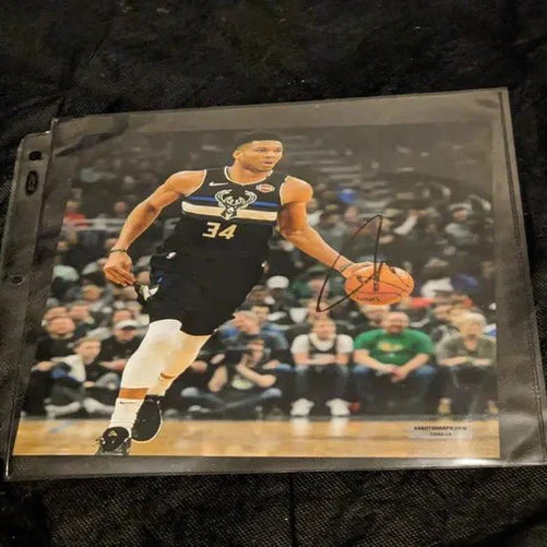Capture the awe-inspiring presence of one of NBA's most prolific players with this Giannis Antetokounmpo Milwaukee Bucks autographed 8x10 photo with COA. Perfect for dedicated fans and collectors alike, this striking photograph showcases Giannis in action, celebrating his remarkable career and championship moments.