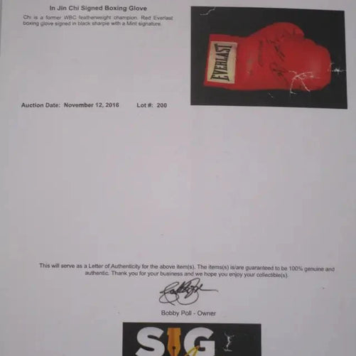 Increase quantity for In Jin Chi signed autographed boxing glove Sig LOA Default Title