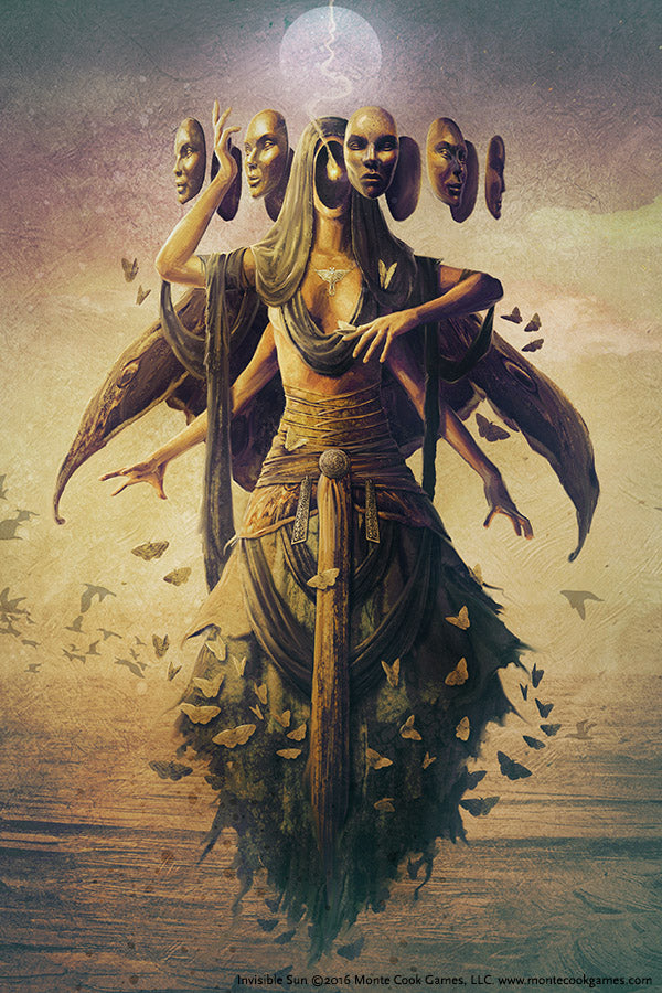 Duri’s face is normally a blur of swirling spiritforms, but occasionally she can make one of them manifest, and she gains its appearance and memories. If she risks keeping the new face too long, however, she can lose her identity.