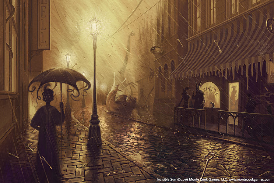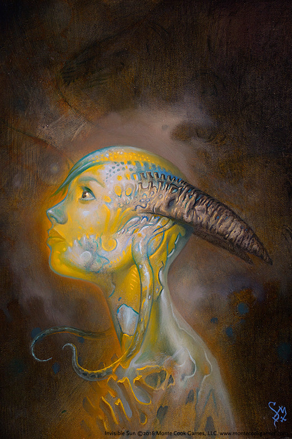 Invisible Sun is a roleplaying game of surreal fantasy. The player characters are vislae—wielders of magical power—recently returned to their true home: the Actuality, a world that seems like a surreal dream to those of us toiling aimlessly in the boring, grey realm you and I falsely believe is the real world. These characters face incredible challenges, visit breathtaking places, and discover secrets so astonishing that the only ones who can cope with them are those who understand the truth that powers the universe: Magic.