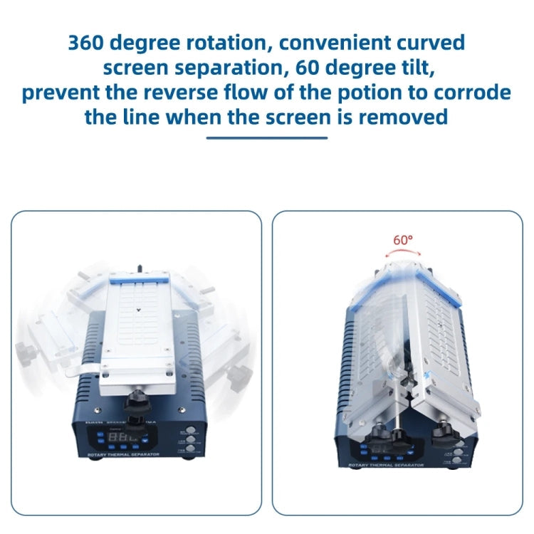 2. The integrated heating module heats up quickly. The heating platform can rotate 185 degrees back and forth. The ball bearing rotates more smoothly to meet the separation requirements of different screens