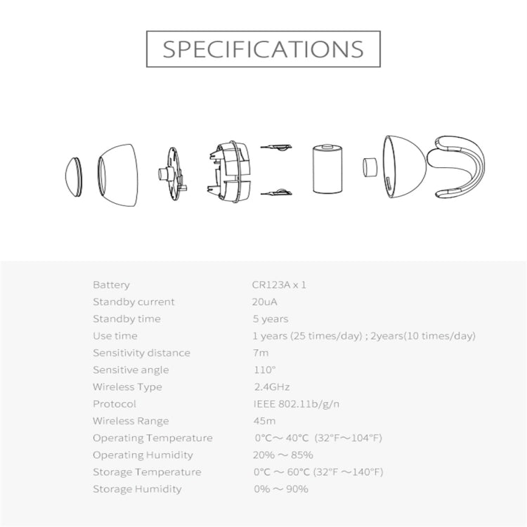 NEO NAS-PD01W Wireless WiFi PIR Detector Motion Sensor, Support Android / IOS systems & Ultra-bright Red LED