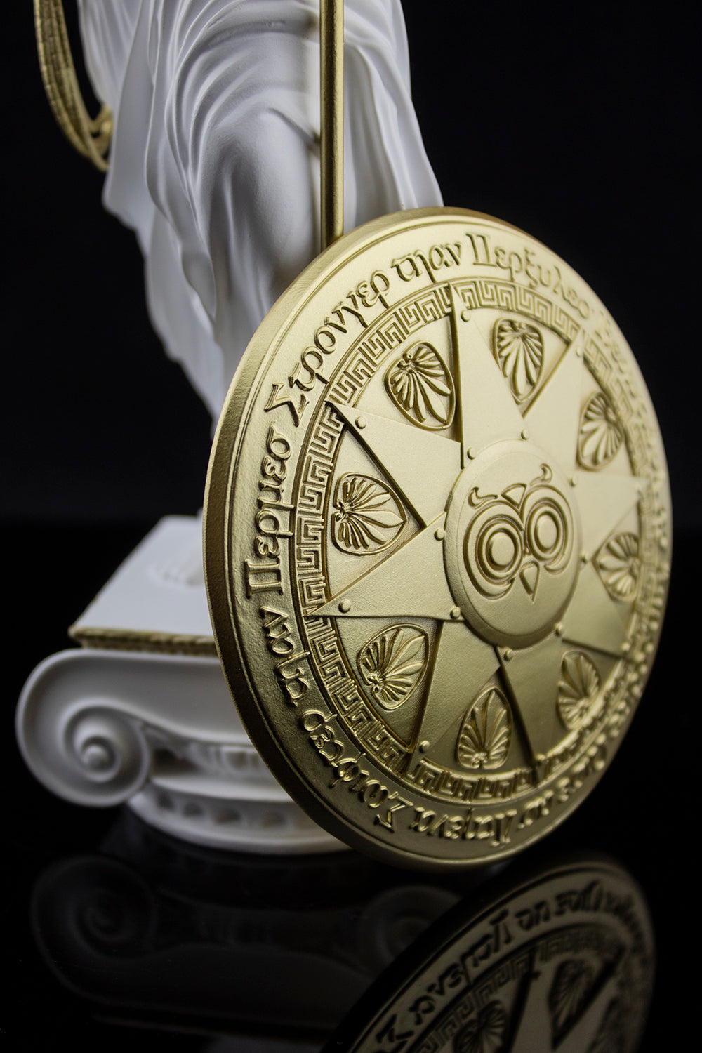 Inspired by the character's ties to Greek mythology, the Wonder Woman: Princess of Themyscira Statue reimagines her as a classical Greek sculpture. Paying homage to the famous Venus de Milo, the marble-colored polyresin statue measures 14 inches from the base of the plinth to the top of the spear and features gold-accented versions of the Super Hero's iconic bracelets, lasso, and other accessories. The spear is removable and the rim of the shield is inscribed with Wonder Woman's classic epithet in Greek lettering: “Beautiful as Aphrodite, wise as Athena, swifter than Hermes, and stronger than Hercules.” This meticulously crafted collectible is truly a work of art!