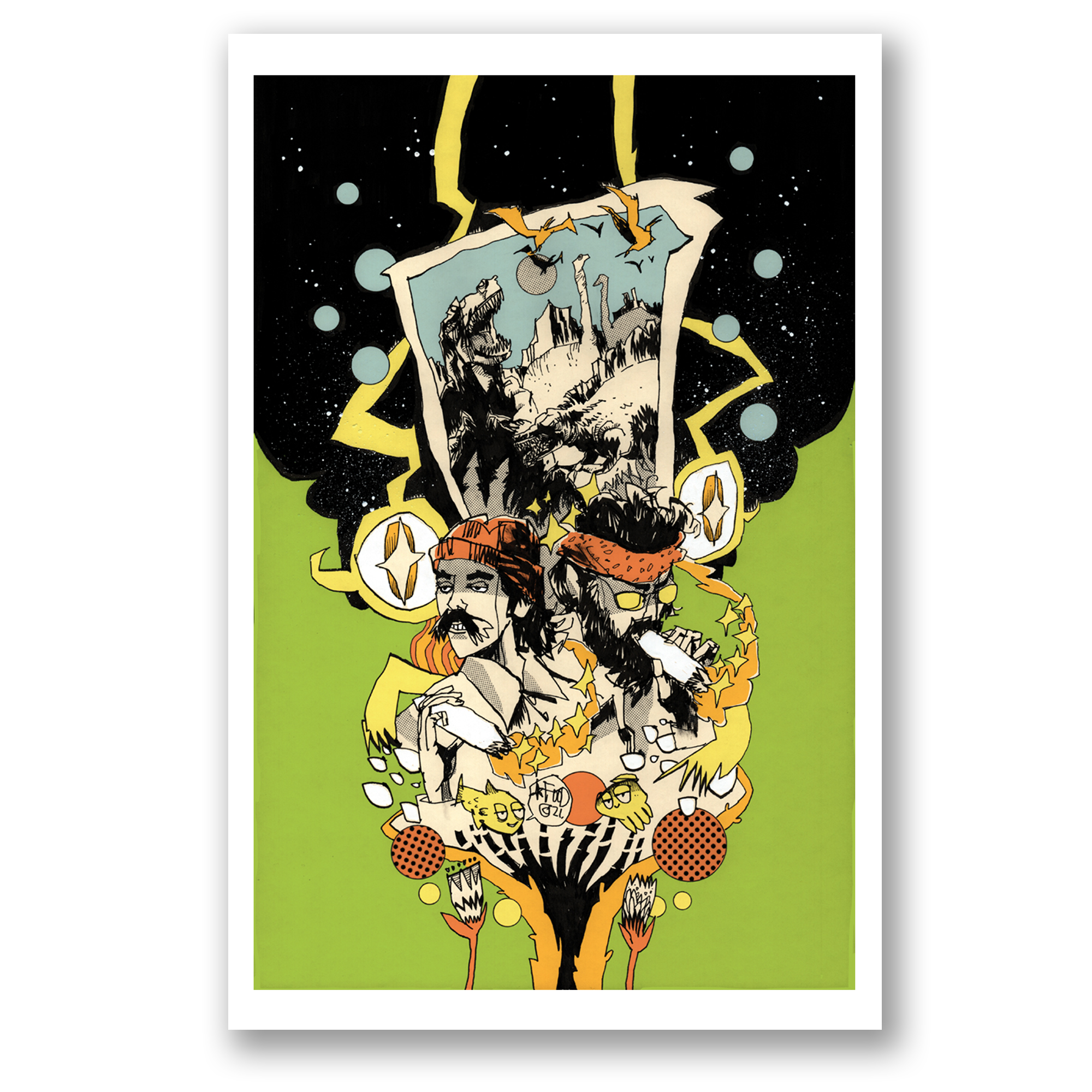 Written by Cheech Marin, Tommy Chong, and Eliot Rahal. Illustrated by Noah Van Sciver and many more. Deluxe Cover by Bob Fingerman. Prints by Rick Veitch, Jim Mahfood, J. Gonzo, Bob Fingerman and Erik Rodriguez with Steve Chanks. Edited by Heidi MacDonald. Designed by Josh Bernstein and Lauryn Ipsum
