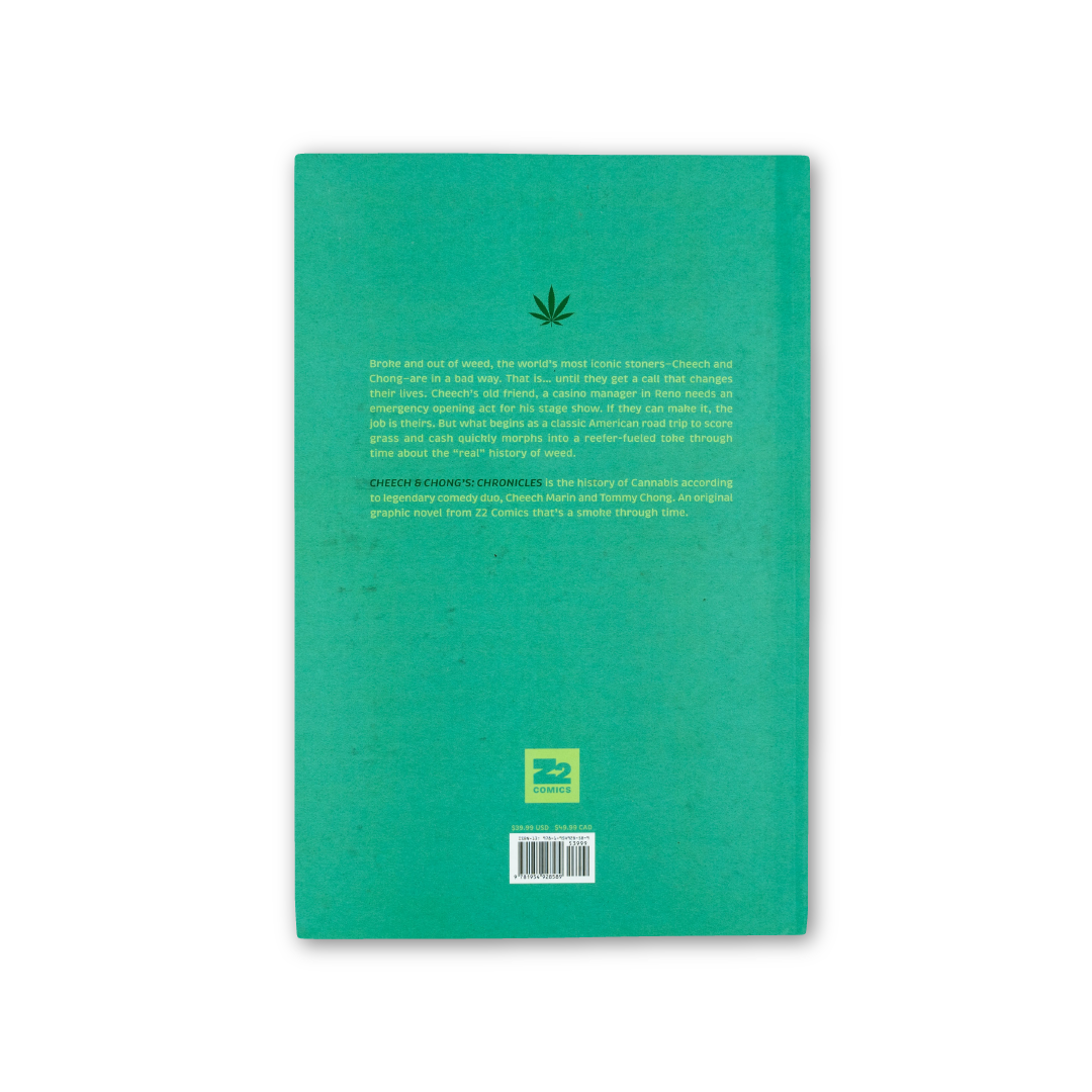 Totally broke and out of weed, the world’s most iconic stoners--Pedro de Pacas (Cheech Marin) and Anthony “Man” Stoner (Tommy Chong)--are in a bad way. That is… until they get a call that changes their lives. Cheech’s old friend, a casino manager in Reno needs an emergency opening act for his stage show. If they can make it, the job is theirs. But what begins as a classic American road trip to score a**, grass and cash quickly morphs into a reefer-fueled toke through time in CHEECH & CHONG’S CHRONICLES: A BRIEF HISTORY OF WEED. This original graphic novel from Z2 Comics is the real history of Cannabis seen through the bloodshot eyes of the legendary comedy duo, Cheech & Chong.