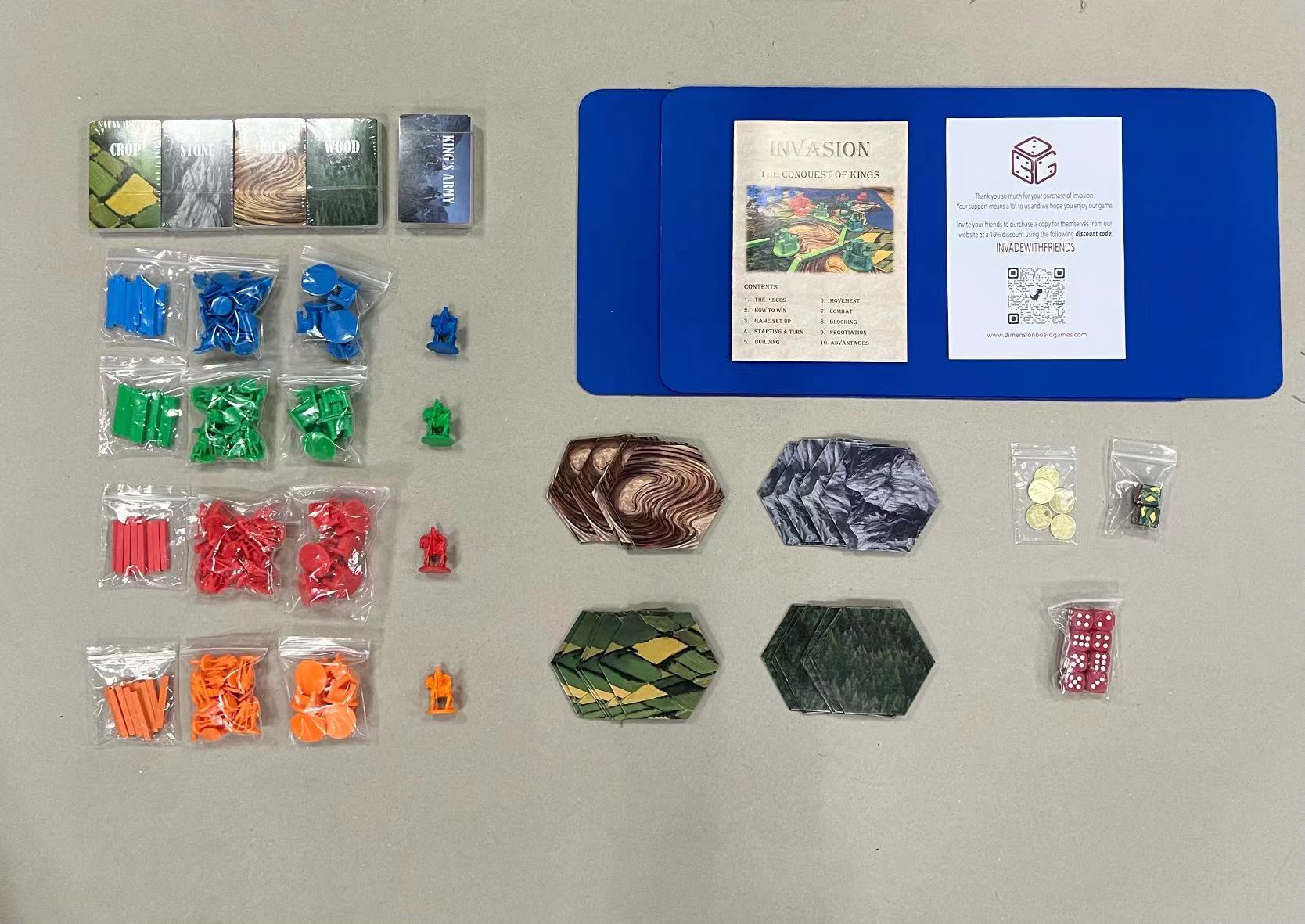Invasion is a two-hour long military strategy board game where players compete to grow the largest kingdom and eliminate enemy kings.