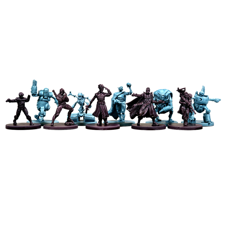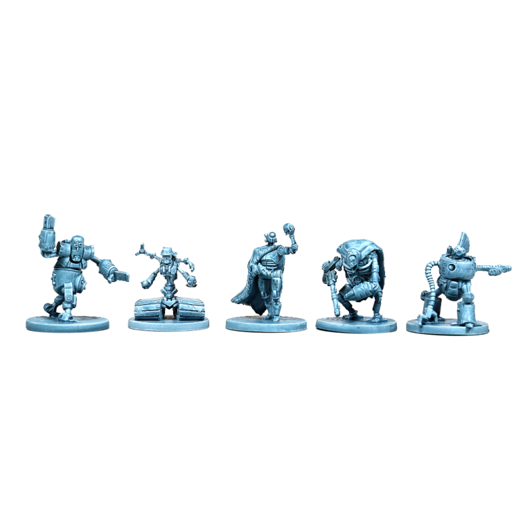 This expansion set expands the game with two more factions, allowing up to four players in a multi-faction mayhem! This boxed set includes ten detailed 32 mm miniatures (five each for the Mechatron Hive and the Nova Cult), cards, tokens, dice, a game mat, cardboard terrain, a ruler, and a scenario booklet including five full scenarios.